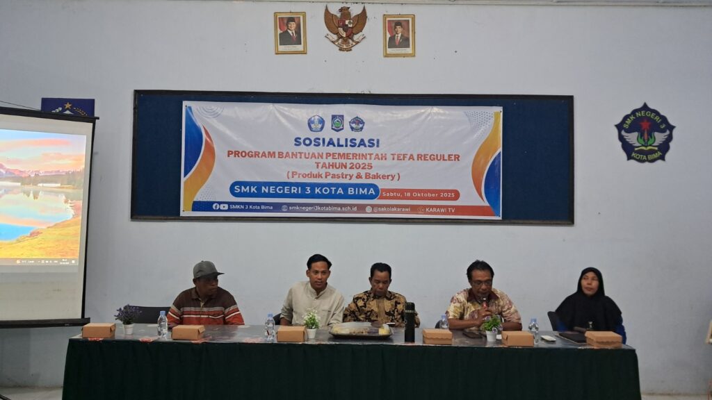 SMKN 3 Kota Bima menggelar Sosialisasi Bantuan Pemerintah TEFA Reguler 2025 pada Sabtu, 18 Oktober 2025 di Ruang Sidang sekolah. Kegiatan ini menjadi langkah strategis dalam memperkuat sinergi antara dunia pendidikan vokasi dan industri, khususnya dalam bidang kuliner.